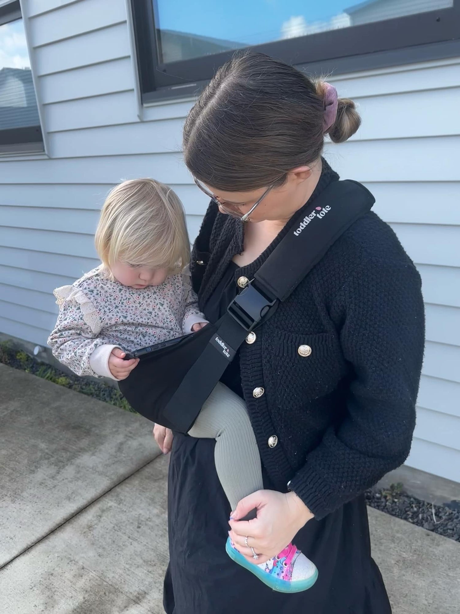 Yes! The Toddler Tote features a double buckle system so you can flip it inside out in seconds. Choose between our bold black-and-white houndstooth or keep it sleek and minimal with all black - it’s like two carriers in one.